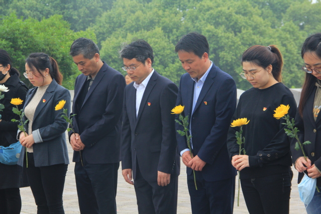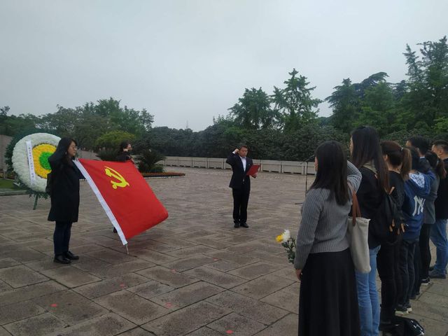 在雨花臺烈士紀(jì)念碑下,全體人員整齊列隊靜默肅立,鞠躬默哀,表達對烈士們的崇高敬意和深切悼念之情。黨員們面向黨旗舉起右拳莊嚴(yán)宣誓,重溫入黨誓詞,并集體瞻仰烈士紀(jì)念碑,為英雄烈士們獻上花束表達敬意。