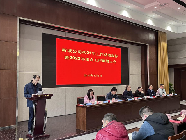 3月3日下午,新城公司召開2021年工作總結表彰暨2022年重點工作部署大會,河西集團黨委副書記、董事繆昌根,新城公司領導班子成員及全體員工參加。