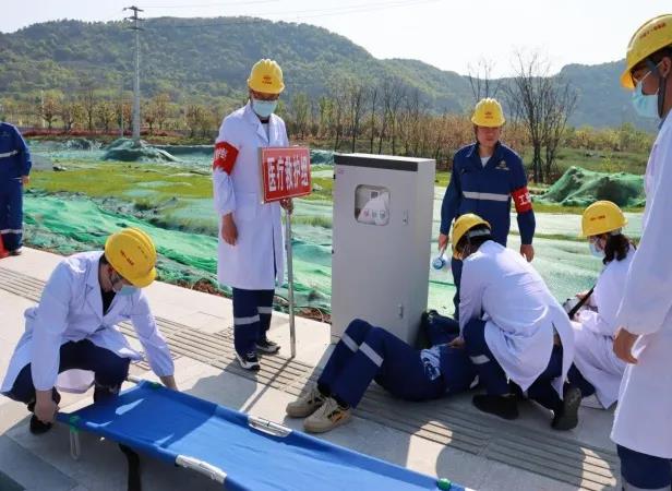 本次演練主要分為事故演練和應急處置措施培訓兩部分。首先開始的事故演練以一名電工檢修配電箱時突發(fā)觸電事故為背景。項目部接到事故匯報后,立即按既定預案啟動事故應急處置程序,各應急小組迅速到位、協(xié)調(diào)配合,分別承擔現(xiàn)場警戒、人員應急醫(yī)護救援、后勤物資保障等任務(wù),順利完成了本次演練。在應急處置措施培訓環(huán)節(jié),項目部邀請了溧水區(qū)永陽鎮(zhèn)社區(qū)醫(yī)院醫(yī)生現(xiàn)場講解、培訓了心肺復蘇、人工呼吸等施工常見事故的緊急處理措施。全部演練結(jié)束后,南京市溧水區(qū)城鄉(xiāng)建設(shè)局質(zhì)量安全監(jiān)督站負責人對演練成果及項目部有序有效的組織能力表示了肯定。