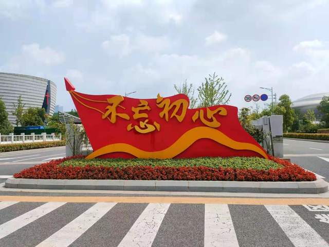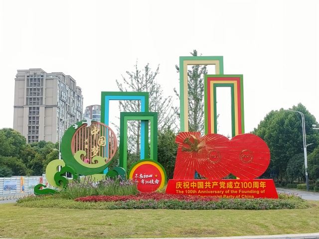 不忘初心來時路,同心共筑中國夢。位于建鄴區(qū)夢都大街揚子江大道路口高7米,占地面積100余平方米的主題景觀,在綠地基礎上突顯了“慶祝中國共產(chǎn)黨成立100周年”活動標識等黨建元素;中國傳統(tǒng)紋樣圖案、彩色立體門框的設計,賦予整件作品立足傳統(tǒng)、開放包容的內(nèi)涵;蛇鞭菊、斑葉芒、彩葉草、夏堇等各式花卉錯落有致的鋪滿地面,烘托了喜迎建黨百年的喜慶氛圍。