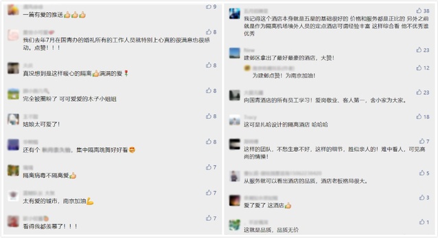 圖▲國青酒店在互聯(lián)網(wǎng)社交平臺(tái)收到的各種稱贊