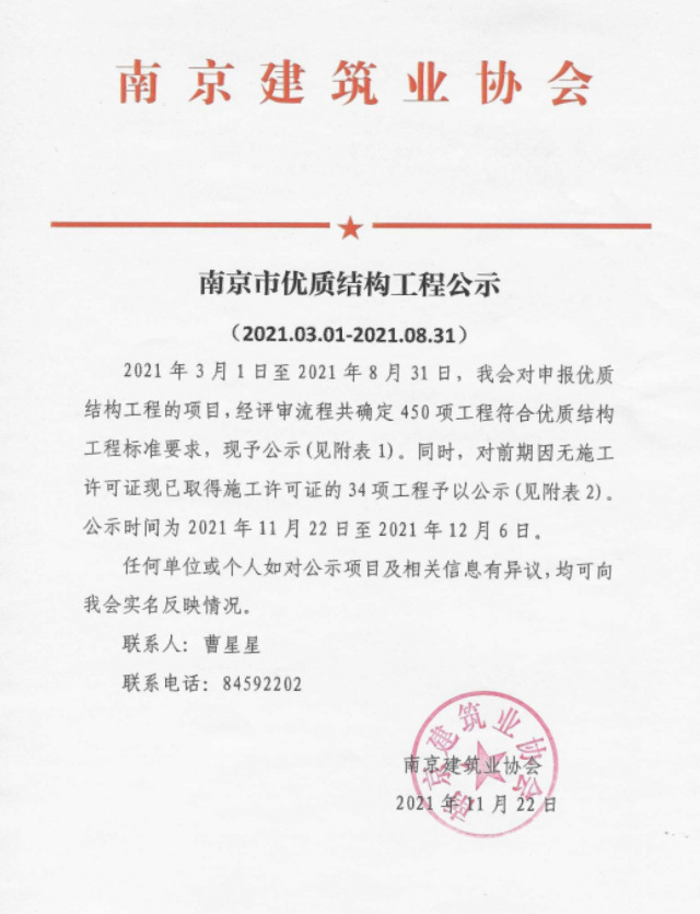 近期,河西南部小學(xué)(6#)及鄴城路幼兒園項(xiàng)目幼兒園單體被評(píng)為“南京市優(yōu)質(zhì)結(jié)構(gòu)工程”,此次獲評(píng),意味著該項(xiàng)目在工程結(jié)構(gòu)設(shè)計(jì)、工程施工管理、過程質(zhì)量控制等方面得到了南京市質(zhì)監(jiān)站、建筑業(yè)協(xié)會(huì)等部門的肯定,施工質(zhì)量達(dá)到南京市領(lǐng)先水平。