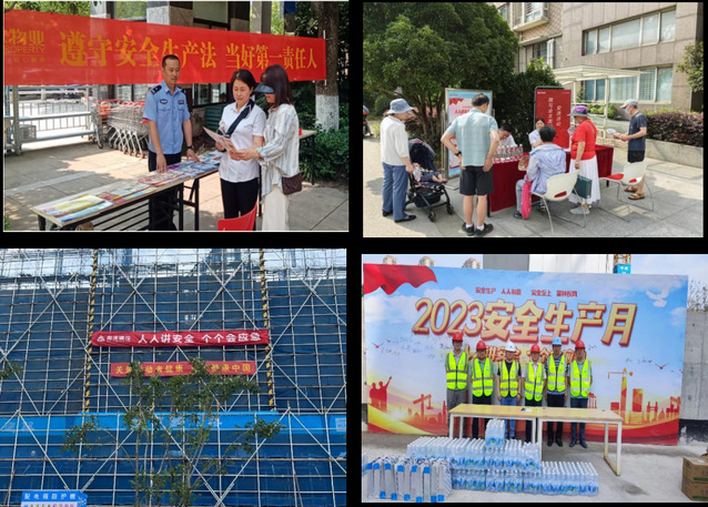結合今年“安全生產(chǎn)月”的主題,集團通過一系列宣傳活動把“安全生產(chǎn)月”的要求和精神傳導到基層,組織下屬公司策劃了多個深入基層一線、群眾喜聞樂見的宣傳活動。物業(yè)公司舉辦講座6場,懸掛橫幅48條,布置海報架或張貼海報33張,派發(fā)宣傳單800余份,持續(xù)不斷增強活動影響力,形成了階段性宣傳熱潮;紫金商管公司成立義務宣傳小組,重點在社區(qū)中心、商業(yè)街區(qū)、裝修工地懸掛橫幅10余幅,現(xiàn)場發(fā)放安全生產(chǎn)小貼士、消防逃生小知識、滅火器使用方法等安全知識宣傳冊共計500余份;新城公司設計制作了安全生產(chǎn)管理宣傳單以及現(xiàn)場應急救援知識折頁,將安全生產(chǎn)防范知識傳遞到每個項目、每個工人。