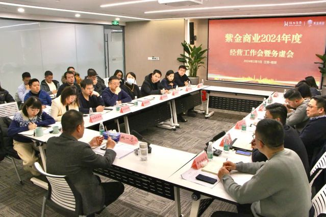 凱歌辭舊歲,金龍迎新春。2024年2月1日,紫金商管公司召開了2024年度經營工作會暨務虛會。首先,招商運營部通報2023年各項經營指標完成情況、店長排名和“五拼五比曬五榜”年度榜單,傳達2024年度各項經營指標。